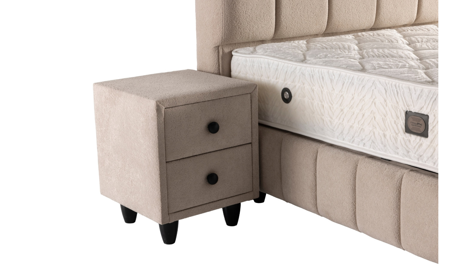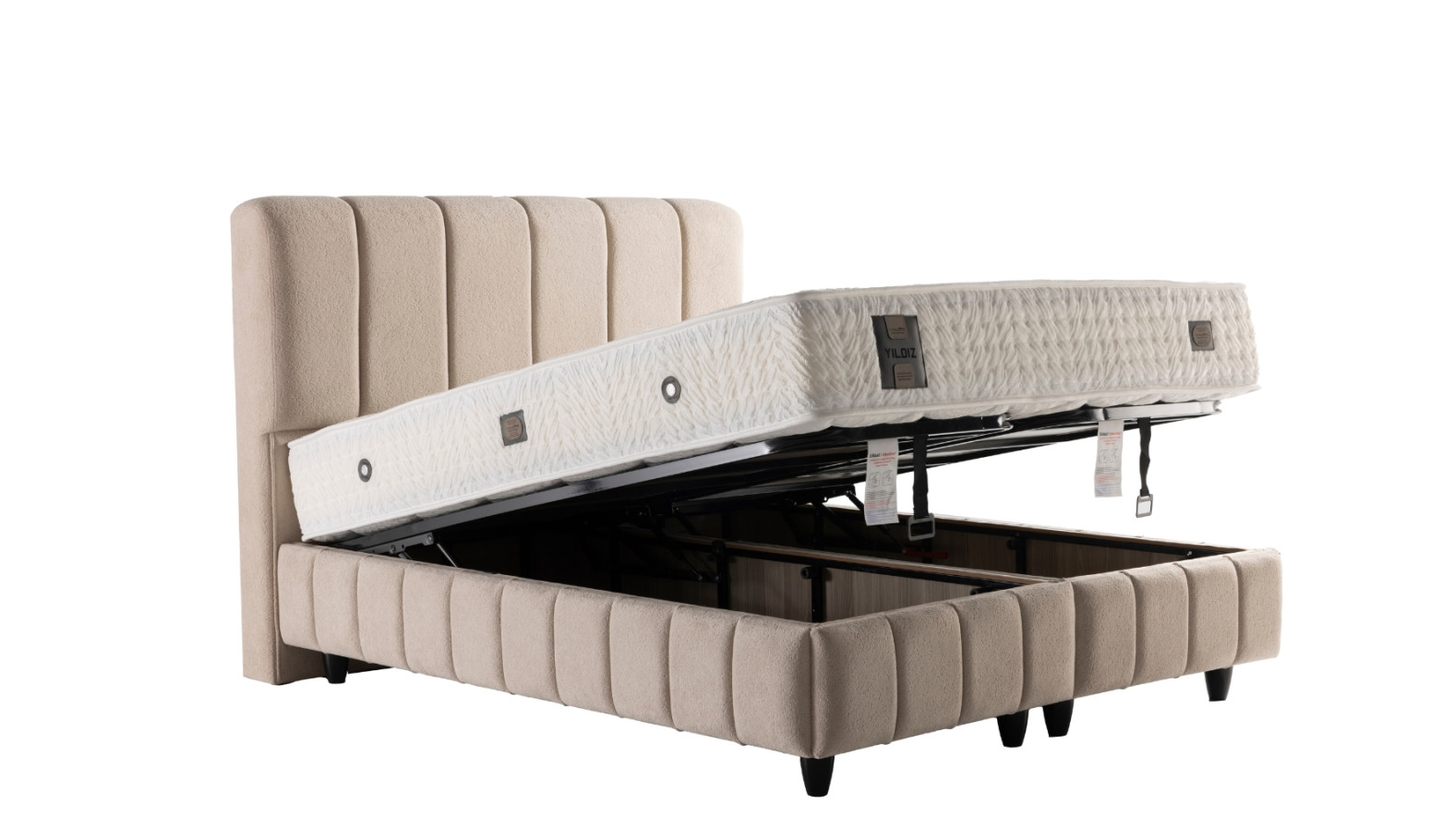 Het Angel model beschikt over twee opbergboxen die openen vanaf het voeteneinde. De opbergruimte beslaat het volledige matrasoppervlak en biedt volop ruimte voor het netjes opbergen van spullen. De onderboxen zijn opgebouwd uit een volledig metalen frame en bekleed in dezelfde stof en kleur als de boxspring. Dankzij de gasveren opent en sluit de opbergruimte soepel en zonder moeite.